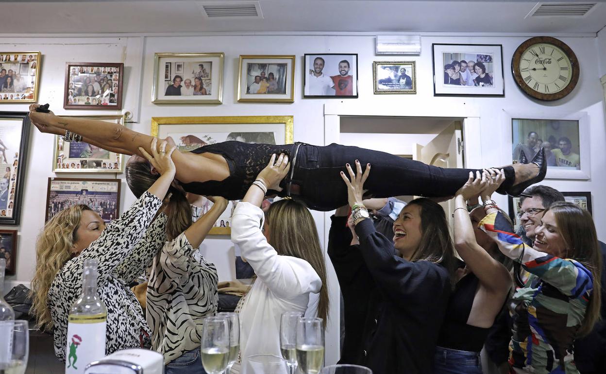 Entre los grupos que tomaron el local durante la reapertura destacó el encabezado por Ana López, una joven que tuvo el honor de ser la primera manteada mientras sonaba el himno de la Legión. «Antes veníamos todos los jueves, éramos las embajadoras de El Pimpi, y el cierre por el Covid supuso todo un drama para nosotras», confesaba.