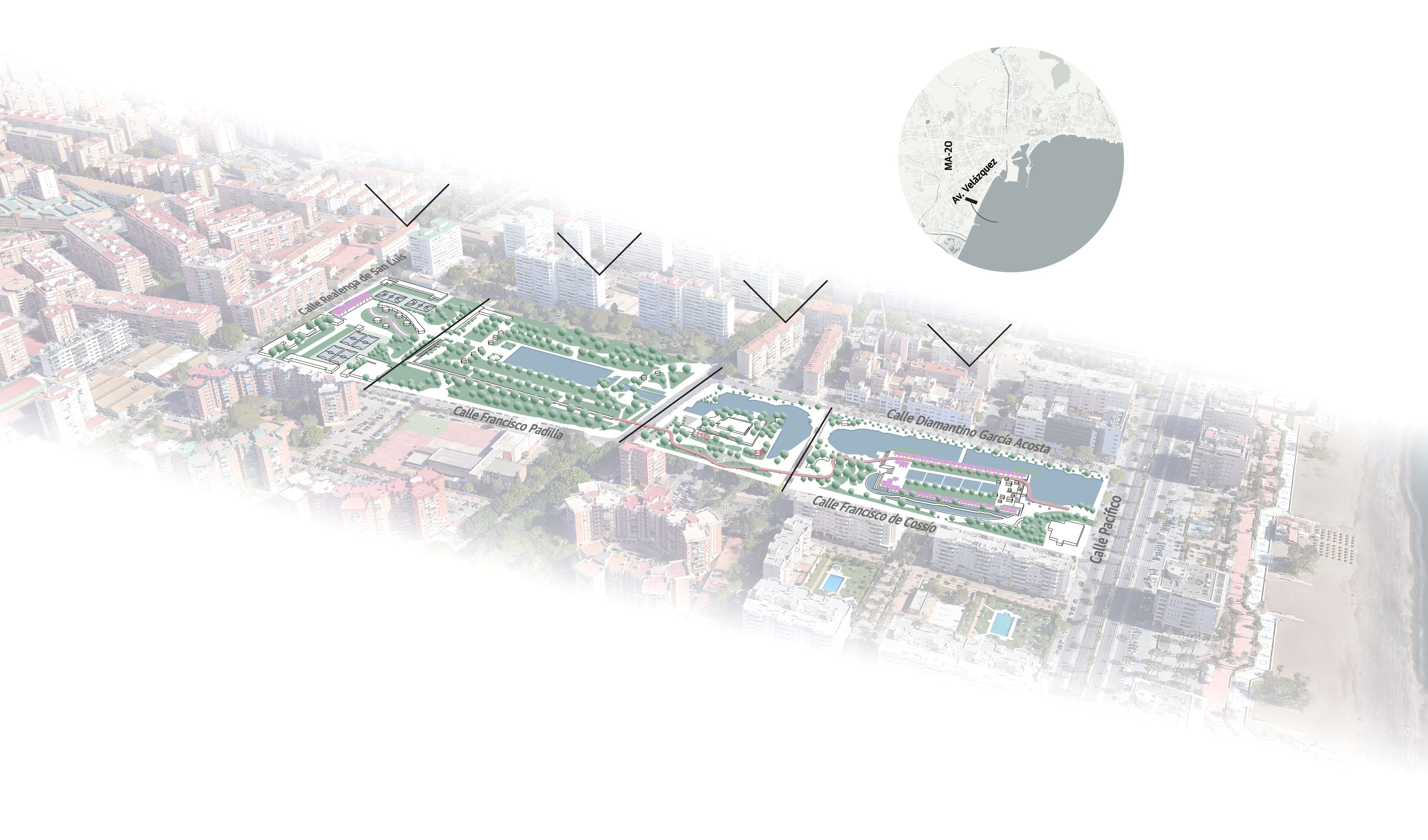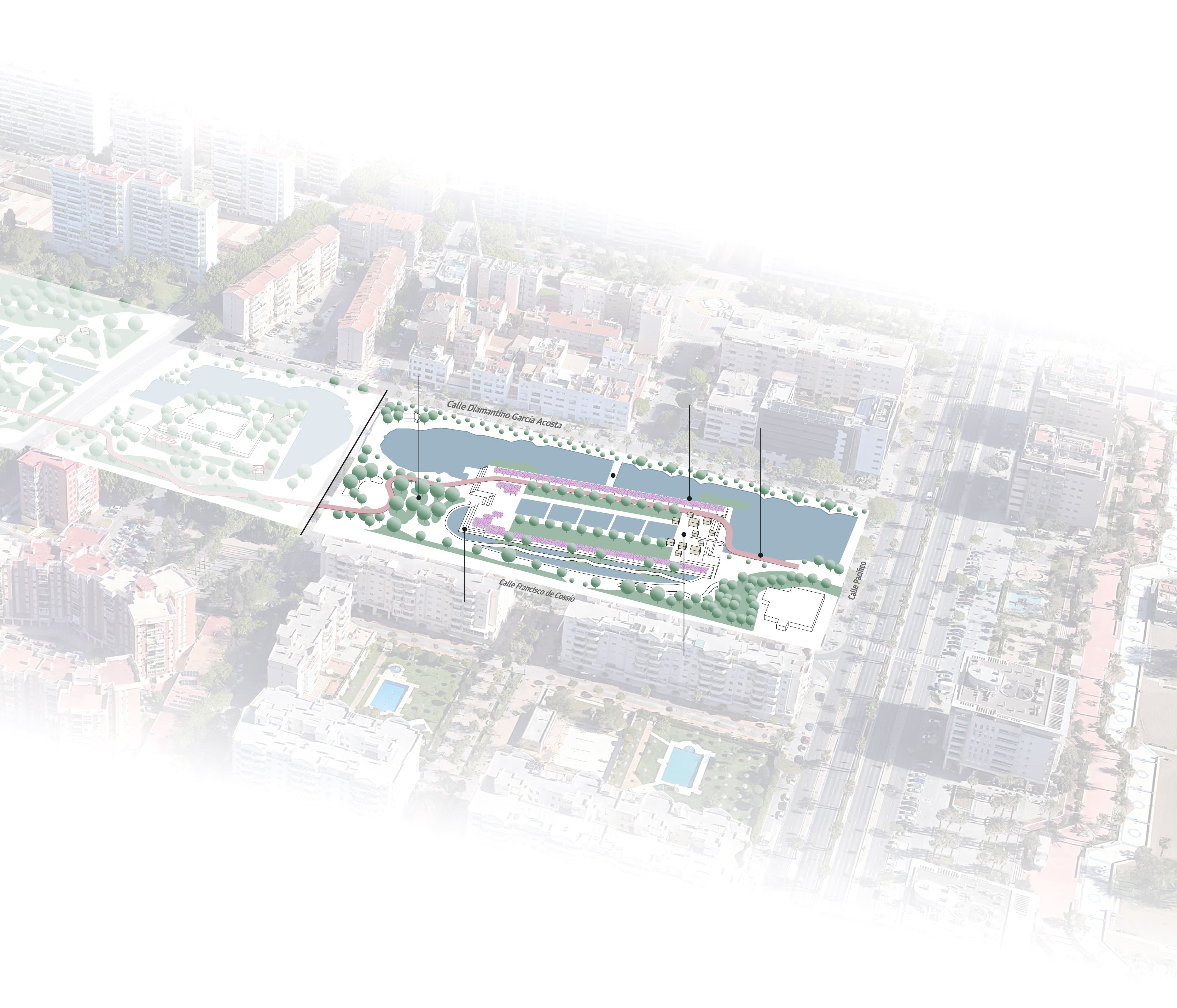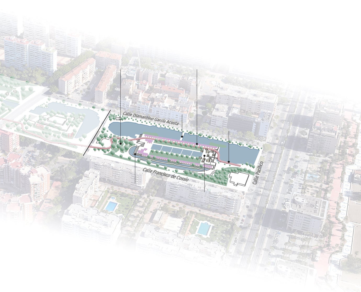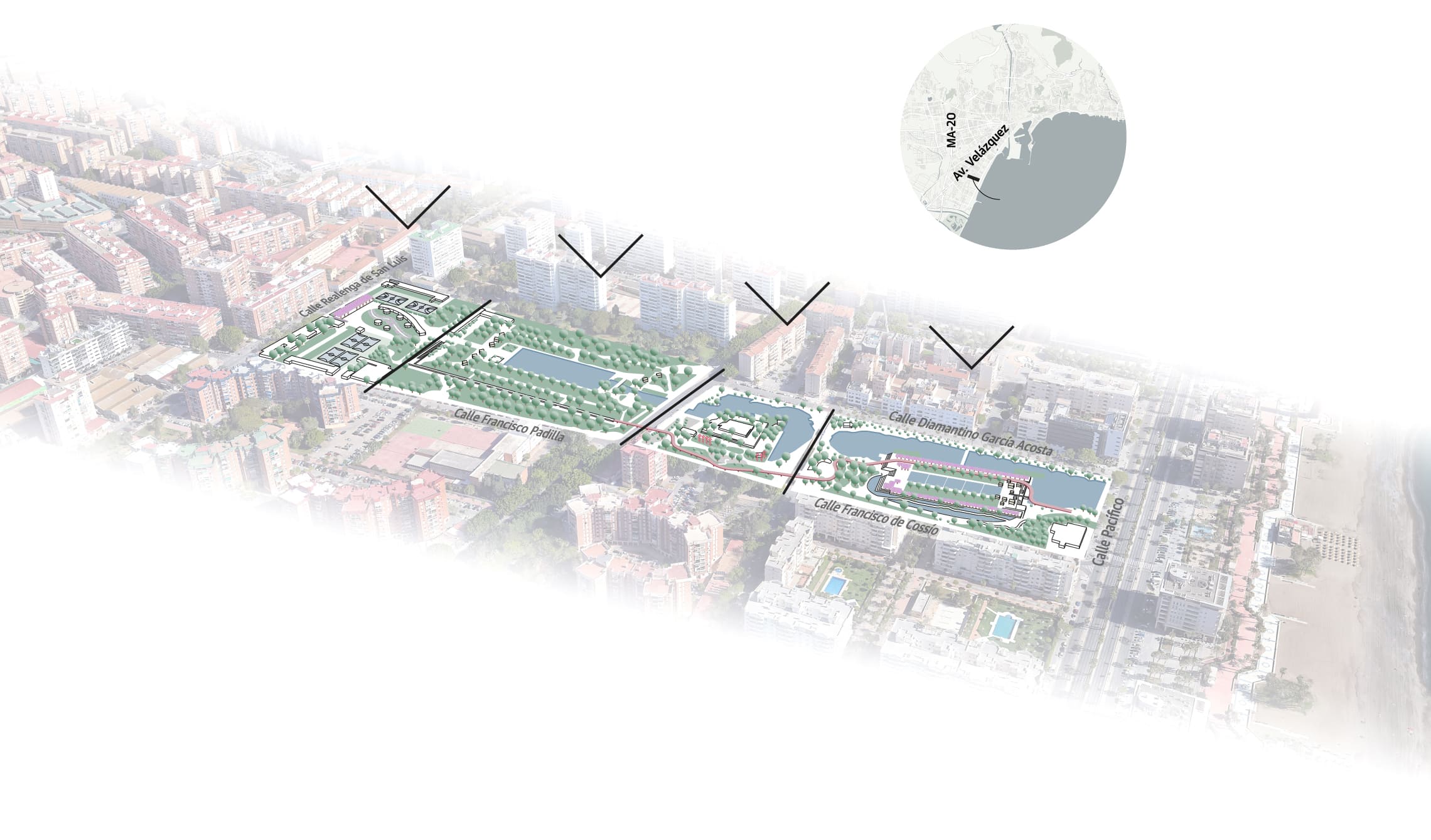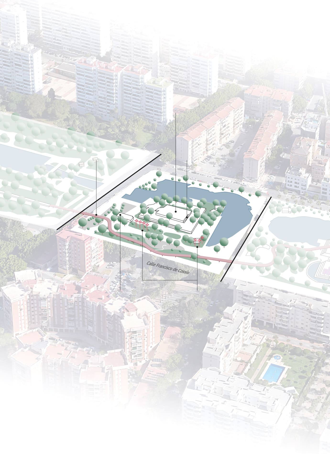 Esta intervención, para la que se ha estimado un presupuesto de casi siete millones de euros, se ha estructurado en cuatro partes que permiten su ejecución por fases en los próximos años. El objetivo es ganar en zonas verdes (un 20% más aproximadamente), generar un recorrido seguro para bicicletas, implementar espacios culturales y realizar espacios que faciliten y hagan agradable la estancia de los ciudadanos.