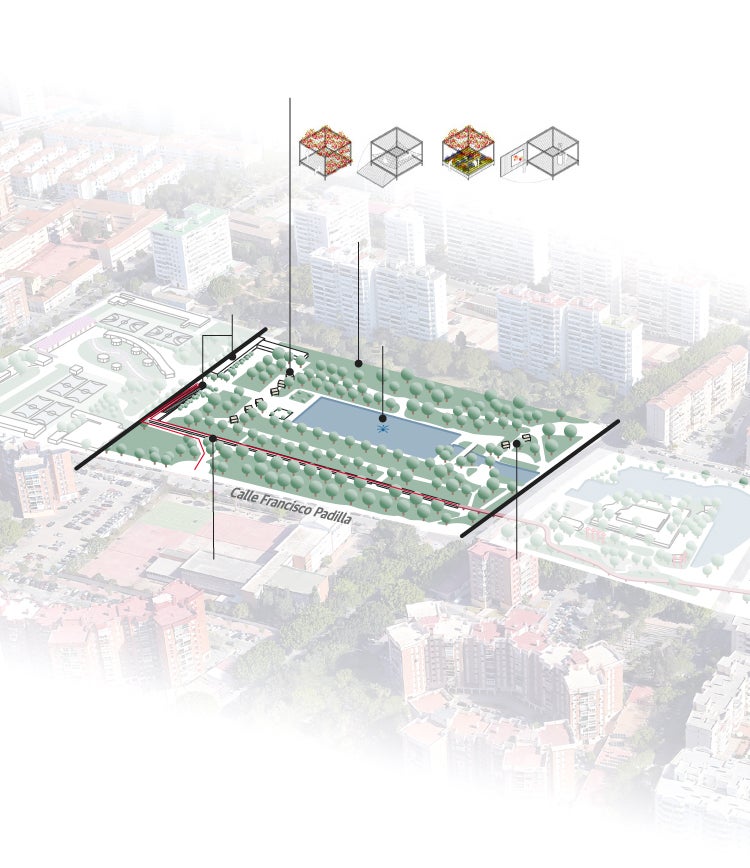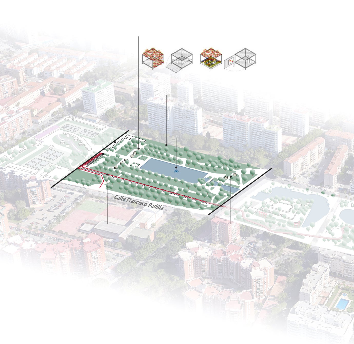 No obstante, una de las propuestas más llamativas para esta zona es la realización de una especie de cubículos intercalados entre las zonas verdes que Eduardo Rojas ha ideado como «módulos de interacción social» y que podrían albergar usos tan dispares como una pequeña biblioteca, una sala de lactancia, juegos de música, espacios infantiles o espacios de apoyo a las familias que se lleven comida para degustarla en las mesas y sillas que se van a habilitar en la zona.