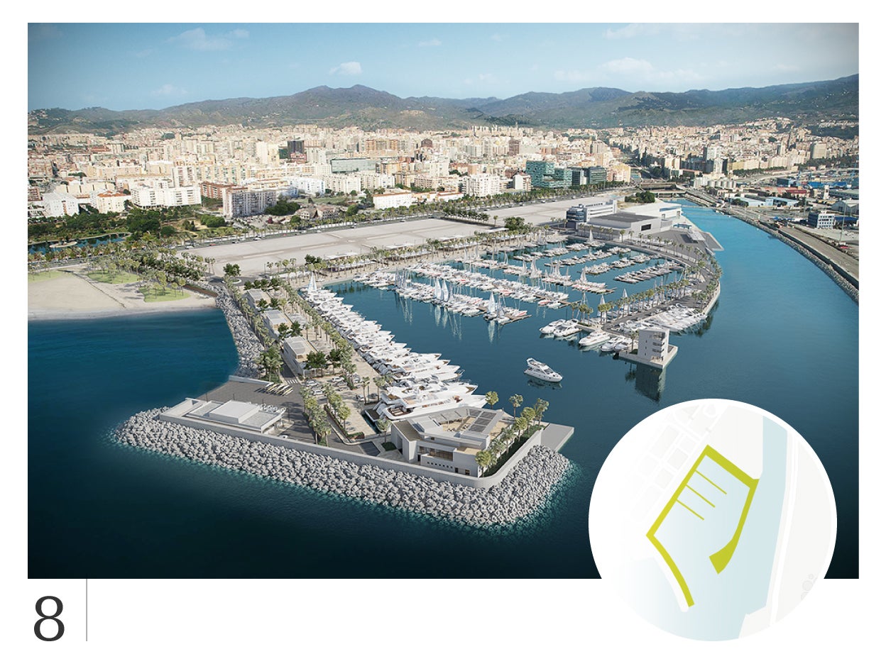 En el aspecto logístico, la inversión central será la construcción del nuevo muelle 8 y la prolongación del 9, sobre el aterramiento de la dársena pesquera, que está en desuso. El 8 estará destinado a los barcos graneleros, que es uno de los principales tráficos marítimos en Málaga. En este emplazamiento se podrá atender a buques de hasta 300 metros, y con un calado de 15 metros. Las embarcaciones más grandes de este tipo que visitan habitualmente la capital tienen unos 275 metros y transportan fundamentalmente graneles sólidos (minerales y agroalimentarios).
