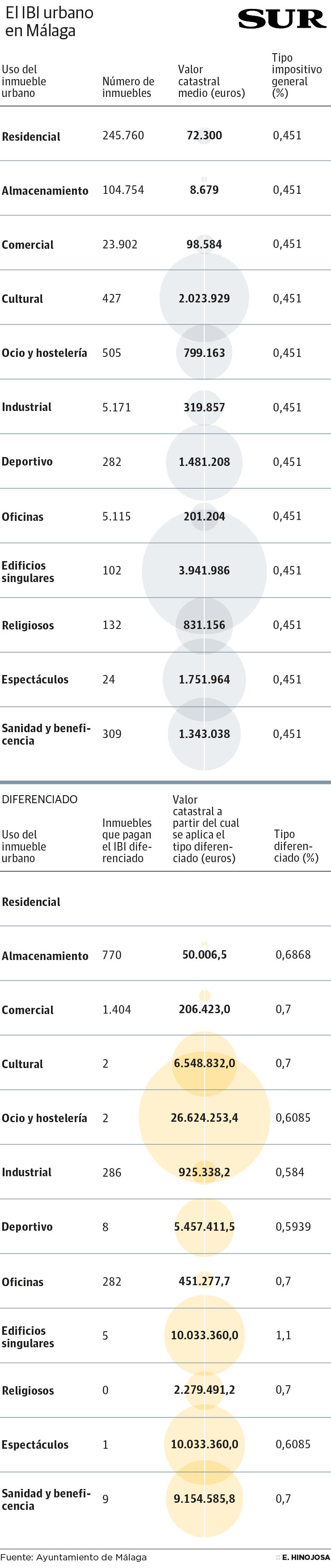 Francisco de la Torre ha pedido a los empresarios de Málaga un mayor esfuerzo fiscal. Y éste se traduciría en una subida del Impuesto de ... Bienes Inmuebles (IBI). De momento, no está decidido que vaya a materializarse en 2020, pero el alcalde ya ha tanteado a las principales patronales (empresarios en general y hoteleros, polígonos, hosteleros y comerciantes en particular) para plantearles la posibilidad de incrementar el recibo a los inmuebles urbanos con otros usos distinto al residencial como pueden ser el comercial, el hostelero, el de almacén o el de oficinas. La Ley Reguladora de las Haciendas Locales permite a los ayuntamientos aplicar un tipo de gravamen más elevado a las grandes empresas que superen un determinado valor catastral. Este umbral lo puede fijar la Administración municipal, pero siempre que el IBI diferenciado no afecte a más del 10% de los inmuebles de mayor valor en cada uso. La ordenanza fiscal malagueña ya contempla este supuesto, pero a día de hoy únicamente se aplica al 2% de los inmuebles no residenciales porque el corte para establecer este aumento está bastante alto.