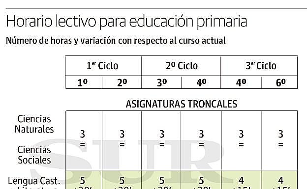 Las clases para los alumnos de Primaria vuelven a ser de una hora de duración. Es una de las novedades de la instrucción de ... la Consejería de Educación que modifica el currículo de esta etapa educativa, en la que se incrementa la carga horaria de materias como Lengua Castellana, Matemáticas o Inglés. «Nadie entendió las clases de 45 minutos», afirmó ayer la portavoz de la Federación Democrática de Madres y Padres del Alumnado de la Provincia de Málaga, FDAPA, Pilar Triguero. Una medida que entró en vigor en el curso 2015/16 y que también desconcertó a los sindicatos de maestros. El horario total semanal para los seis cursos de Primaria se mantiene en las 25 horas.