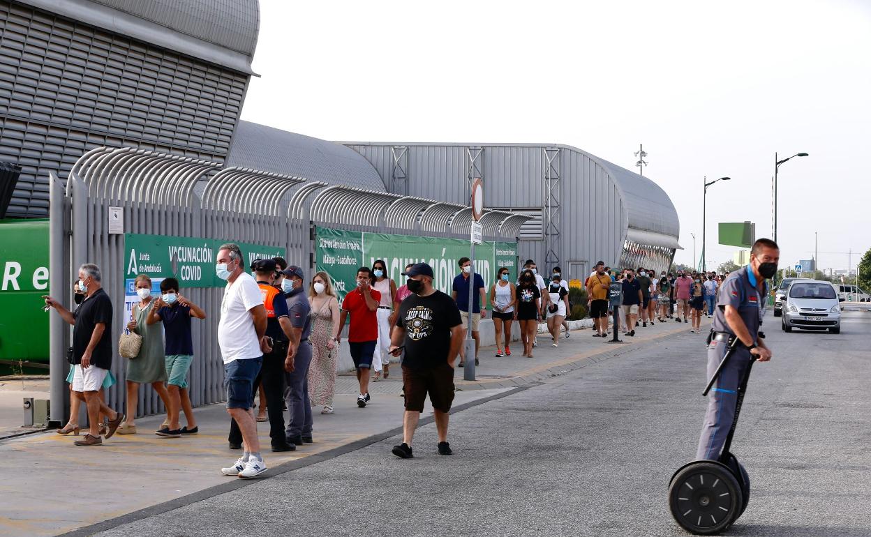 El Palacio de Ferias y Congresos de Málaga es un continuo ir y venir de personas este lunes en la primera jornada de vacunación masiva ... sin cita previa impulsada por el Servicio Andaluz de Salud para aumentar la inmunidad frente al Covid-19 entre la población local y facilitar la dosis a aquellos andaluces que estén de vacaciones en la provincia. Pero la práctica totalidad del goteo continuo desde primera hora de la mañana lo protagonizan malagueños rezagados que hasta ahora no habían querido o podido vacunarse así como adolescentes e incluso a menores que tengan cumplidos 12 años o más pese a que, oficialmente, a estos últimos les tocaría a partir del miércoles. En cuanto a los turistas, más bien pocos, seguramente por aquello de no arriesgarse a pasar un par de días con mal cuerpo en plenas vacaciones cuando dentro de unos días pueden vacunarse en su lugar de residencia.