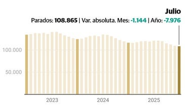 El pasado mes de julio Málaga alcanzó un hito histórico al bajar de los 110.000 parados. No estaba por debajo de este umbral desde ... julio de 2008, en la antesala de la Gran Crisis cuyo inicio quedaría marcado a fuego en aquel septiembre negro con la quiebra de Lehman Brothers. En los años siguientes la provincia sufrió una escalada vertical del paro que la llevó a multiplicar por más de dos su colectivo de desempleados: el máximo histórico se alcanzó en 2014, con 210.000 personas apuntadas en la lista del SAE (que se dice pronto). Desde entonces comenzó una lenta curva descendente que hoy continúa sin que Málaga haya conseguido romper el muro de los 100.000 parados. Ahora está más cerca que nunca, pero es poco probable que lo consiga este verano, ya que en agosto no es descartable que suba el paro (hay muchos años que así ocurre, dado que al final de ese mes finalizan muchos contratos temporales en hoteles y chiringuitos).