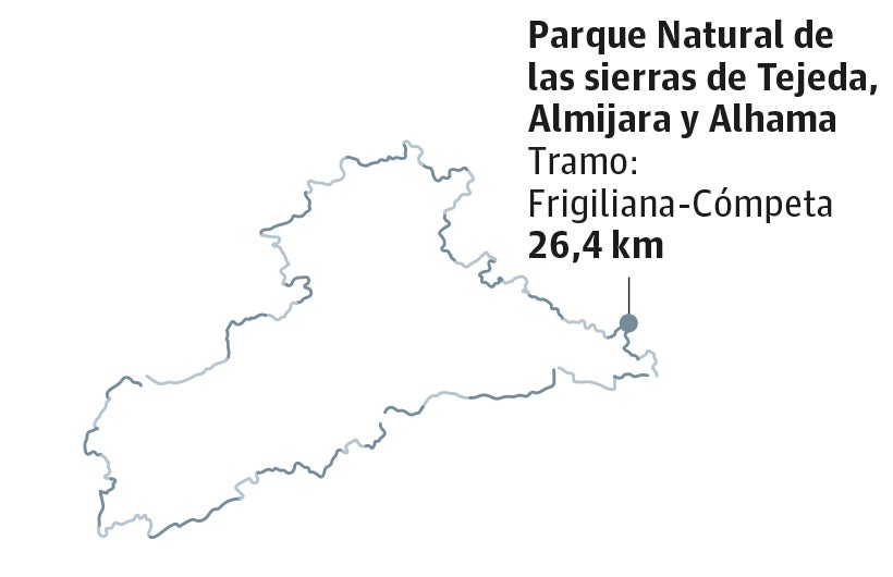 Además del Saltillo, la Gran Senda es una buena excusa para adentrarse en este parque natural que Málaga comparte con Granada. A través de las etapas 5 y 8 se pasa por la ladera sur de las sierras de Tejeda y Almijara. Las etapas 5 y 6, Nerja y Cómpeta, son las que más recorren este espacio protegido.