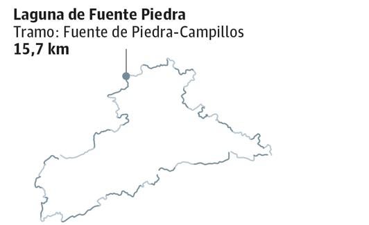 Entre las etapas 17 y 18 de la Gran Senda hay una parada obligatoria en la reserva natural de la Laguna de Fuente de Piedra, uno de los humedales más importantes de Andalucía. Y lo es tanto por sus dimensiones, que superan las 1.300 hectáreas, como por la importante avifauna que hay en ella, como la colonia de flamencos.