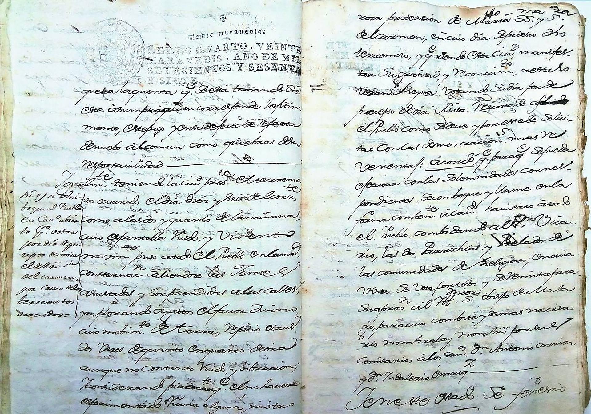 «Día de San Dionisio Areopagita, a nueve de octubre y a los nueve de la Luna de septiembre del año de 1680, a las ... siete y cuarto de la mañana, estando el Sol claro… y el cielo sereno. La tierra y el mar en calma, sin moverse átomo de viento, llegó a esta ciudad por la parte del mar, según los marineros sienten, un terremoto tan grande, tan espantoso y dilatado que, según común opinión, no han visto, no han oído ni leído los nacidos, otro semejante».