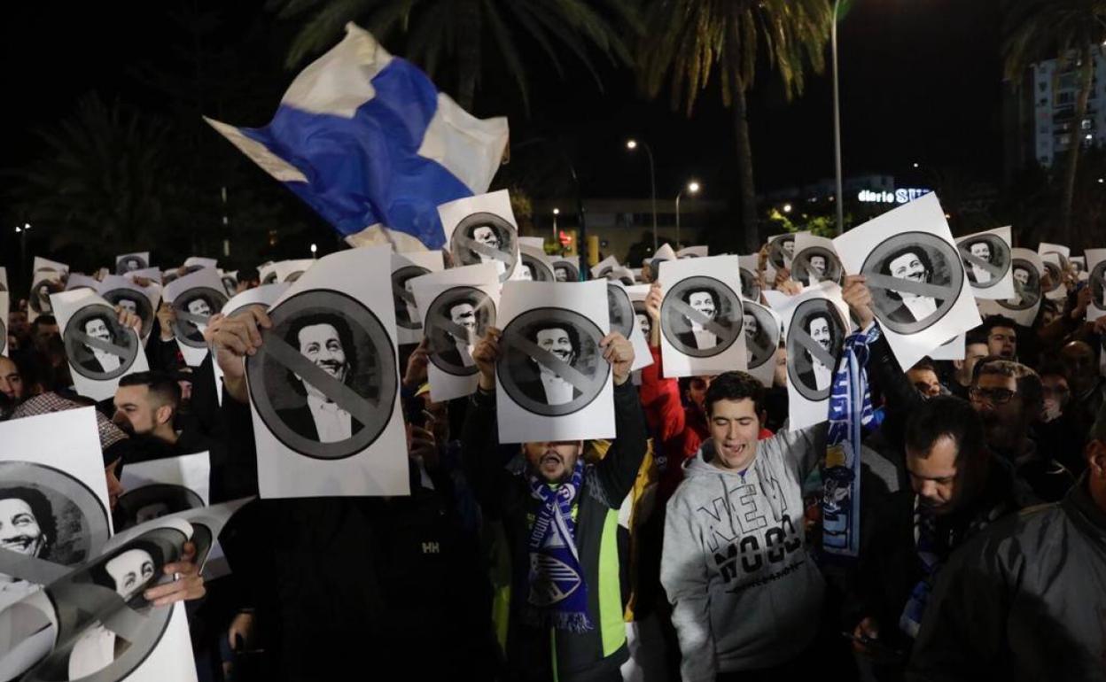 Anoche sucedió lo mismo. Varios centenares de personas, la mayoría jóvenes, volvieron a gritar el sempiterno «¡Al-Thani, vete ya!», que se unió a otros clásicos como «¡Málaga somos nosotros!» o «¡Estamos hasta los huevos del moro de Catar!». Asimismo, la afición concentrada entonó gritos y canciones de apoyo al entrenador destituido, Víctor Sánchez del Amo, después de verse víctima de un delito de 'sextorsión' y de ser despedido por el club. «¡Yo también me toco!», cantaron varias veces los malaguistas.