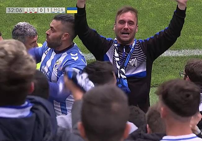El éxtasis del medio millar malaguistas de Lugo... y las camisetas de premio