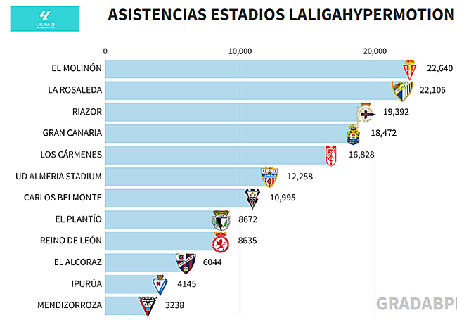 En esta ocasión fue El Molinón, en Gijón, con un partido entre clubes históricos, un Sporting-Zaragoza, con el estreno de Rubén Sellés como entrenador del cuadro visitante. En este 1-0 hubo 22.640 espectadores, por encima de los 22.106 de La Rosaleda.