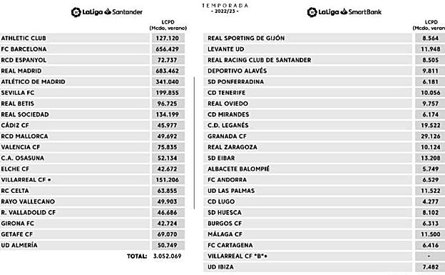 Además, hay que diferenciar entre límite salarial de plantilla deportiva inscribible y no inscribible (que incluye a la cantera). La cifra que ha asignado LaLiga suma las dos y afecta al gasto en jugadores, primer entrenador, segundo entrenador y preparador físico del primer equipo, filiales, cantera y otras secciones.
