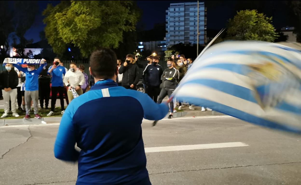 Un grupo de seguidores se acercaron a la puerta 18 de La Rosaleda, donde acceden los equipos al estadio, para alentar a los jugadores antes del último encuentro del año