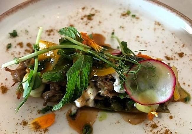 Al frente de los fuegos está el propio Gabriel y en la sala Alexis Maurel, quien a su vez se responsabiliza también de la carta de vinos. Una carta corta en referencias y con algunos precios desajustados al alza. Un establecimiento con esta filosofía de cocina requiere de unos vinos en consonancia. Si nos centramos en la carta de platos observamos cómo sobre una buena variedad de verduras pivotan los demás productos, carne o pescado. Una idea que Gabriel plasma fielmente en la mayoría de sus platos, como en el gazpacho de tomate verde, el ceviche de corvina o la panceta con zanahoria caramelizada. También y como un pequeño guiño a esa cocina mediterránea más oriental, el pan cocinado a la brasa y acompañado de cordero mechado con especias y menta puede ser una buena opción a la hora de elegir un plato principal.