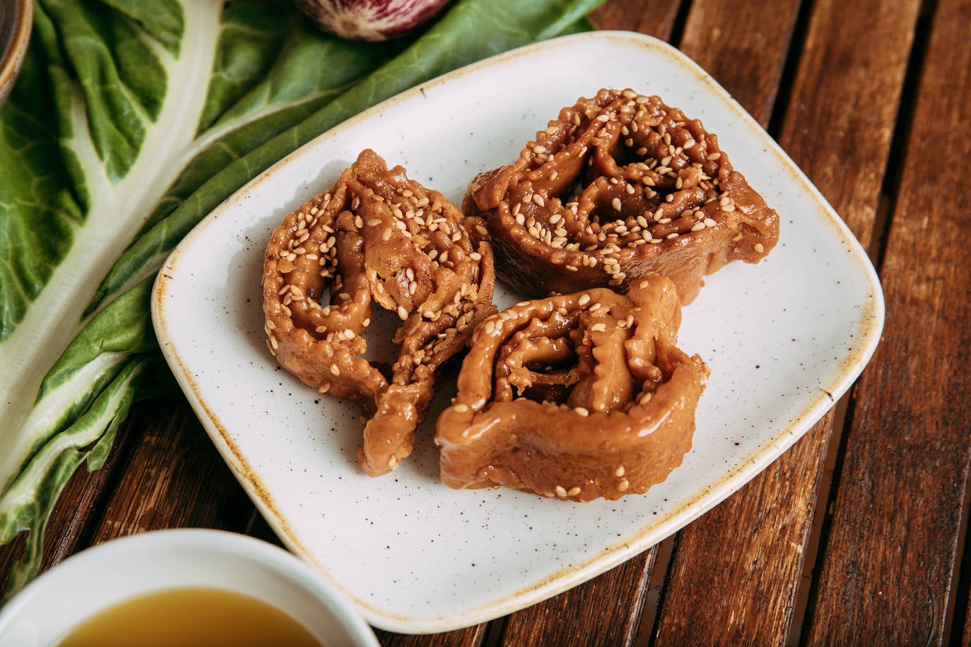 En la imagen inferior, la chebaquía marroquí, un dulce de sartén emblemático de Marruecos, cuyo origen se remonta a la llegada de judíos sefardíes y árabes andalusíes al país. La chebaquía, tradicional en el ramadán, está emparentada con las hojuelas.