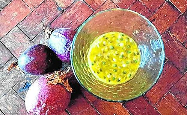 Hasta hace pocos años, conocíamos más el maracuyá o fruta de la pasión como ingrediente de zumos o recetas de repostería y cócteles, que como ... fruta en fresco. Sin embargo, la planta Passiflora edulis, enredadera nativa de las selvas tropicales del centro y el sur de América, se sembraba en muchos jardines por la belleza de sus flores, conocidas como pasionarias o clavos de Cristo, y desde hace unos años, distintas variedades se están cultivando con muy buenos resultados en la Axarquía, lo que nos acerca la posibilidad de disfrutar una fruta única y excelente. El botánico Francisco Hernández de Toledo, que viajó a México en 1571 comisionado por Felipe II, la mencionó en sus notas como 'granadilla', y contaba que «en sus flores pueden verse los instrumentos de la pasión de Cristo».