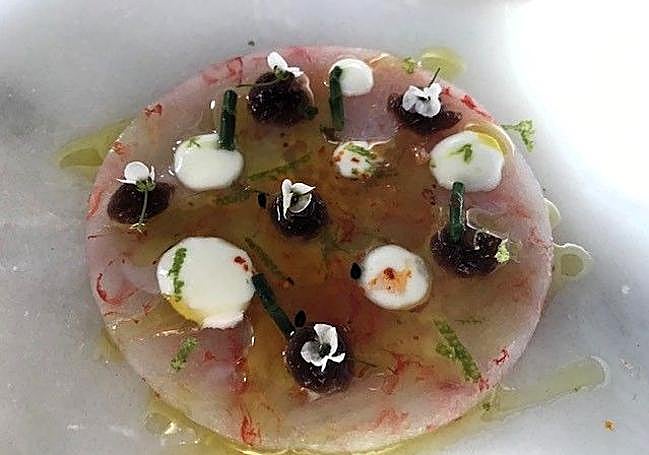 Un plato para compartir que ya se repite con frecuencia. En Malva además de refrescante es contundente por el grosor de las lonchas. Muy poco aderezo hace que el sabor de la gamba prevalezca.