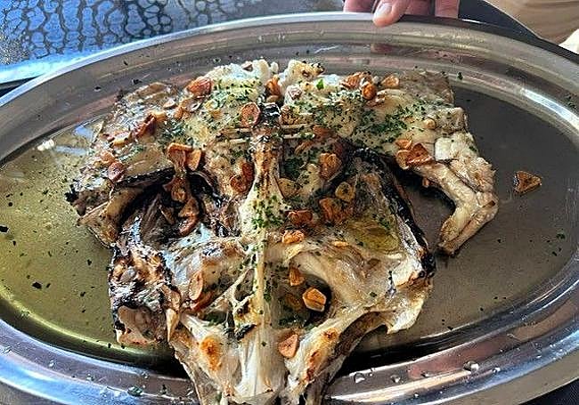 Txema lo ofrece en sugerencias cuando ha adquirido merluzas del tamaño apropiado. Una salsa verde con ajos en su punto de fritura y un cogote poco hecho aseguran el éxito del mismo. El cogote es uno de los grandes platos de la casa.