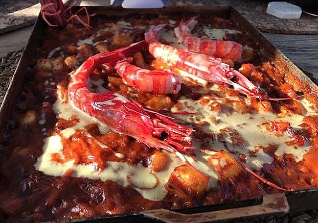 Xabier mantiene en Palapa dos formas diferentes de preparar este clásico arroz, seco o caldoso. Me inclino por el seco a la llauna, o sea, en bandeja de hojalata. Un buen fondo de marisco y un arroz en su punto justifican esta elección.