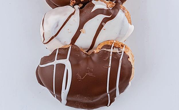 También Pastelería Ramos, uno de los referentes del dulce en la provincia, ha sacado un surtido de palmeritas de fantasía, con chocolates de alta calidad y cremas de relleno. Pero su gran hit, disponible en la tienda 'on line' (https://pasteleriaramos.com/tienda/), son las minitortas de Algarrobo recubiertas de chocolate al 70% de cacao. Una tentación irresistible. El paquete de cinco unidades cuesta 4,25 euros en Internet.