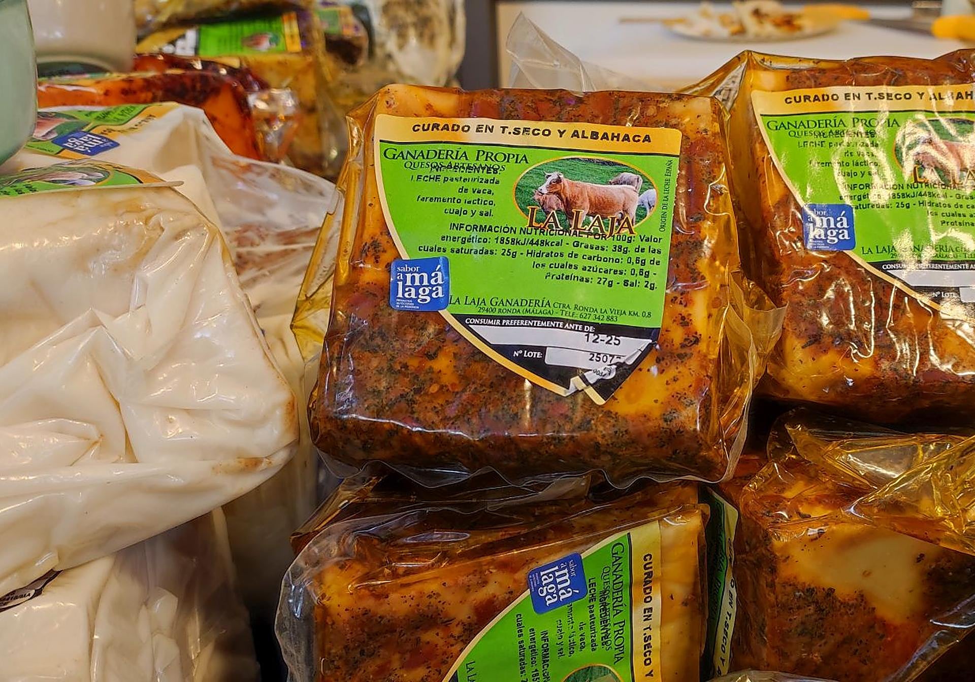 Esta quesería de Ronda (sólo vaca) acude por primera vez a la Gran Feria Sabor a Málaga y lo hace con un amplio repertorio de productos lácteos. Entre los últimos que han sacado al mercado está el que viene emborrizado con tomate seco y albahaca.