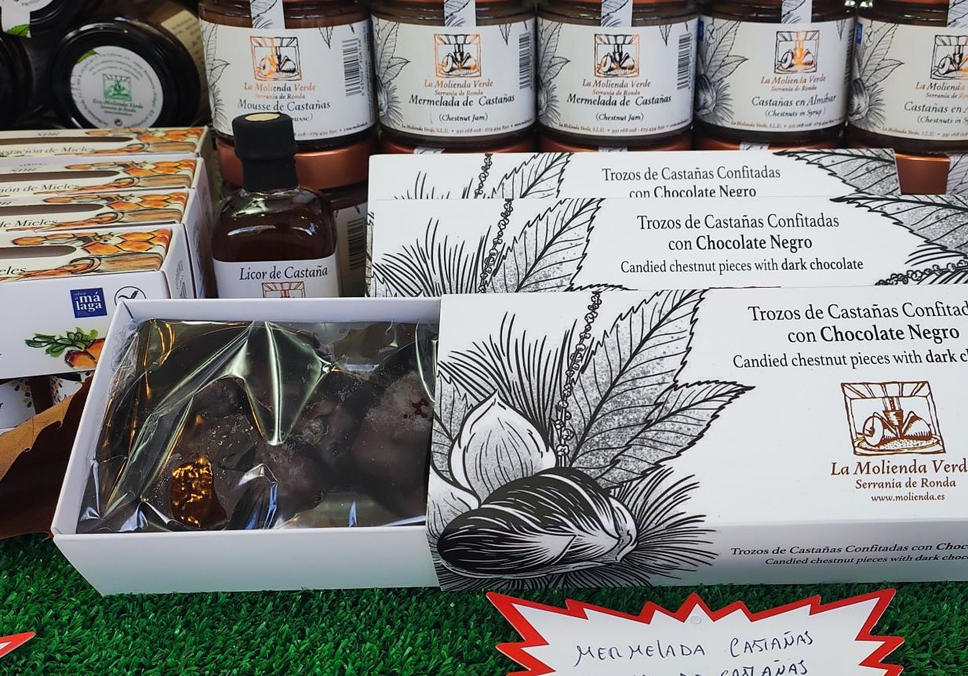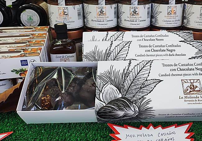Más chocolate. Esta vez cubriendo a suculentos trozos de castañas del Valle del Genal previamente glaseadas como si fueran un 'marron glaçé'. Se presenta en un cuidado envase. Idóneo para regalar o para darse un capricho.