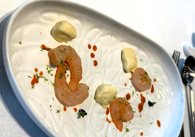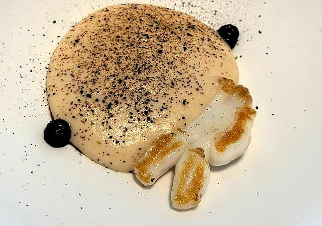 Es, sin duda, uno de los platos más geniales del nuevo menú de Messina. Un gazpachuelo, más cremoso, pero perfecto en cuanto a su ejecución y objetivo final, que se realza con el suave sabor de las huevas.