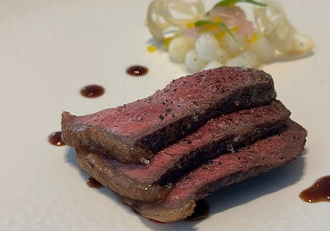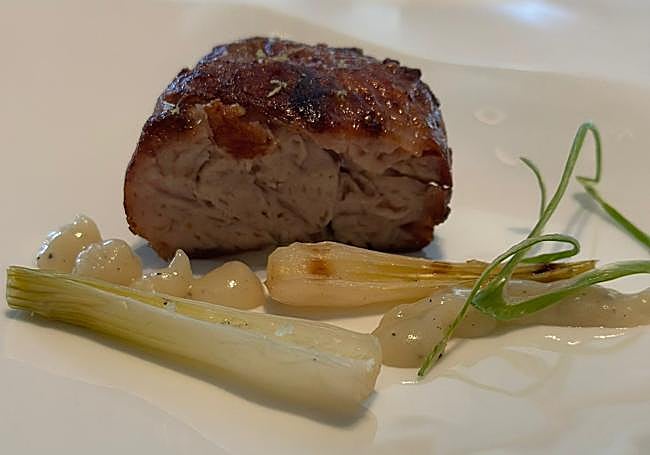 Los argentinos sienten devoción por las mollejas de vacuno y, en esto, Mauricio no se queda atrás. Sencillez extrema, una ligerísima crema de pimienta negra y unas sutiles y perfectamente braseadas cebolletas para combinar.