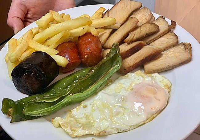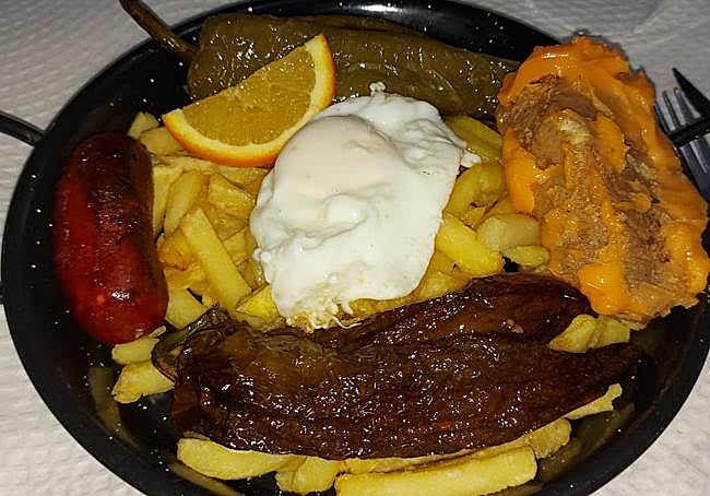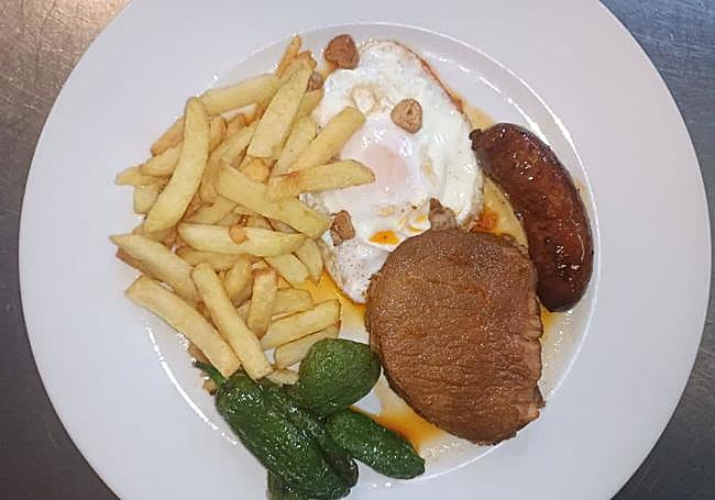 Aunque no sea un plato muy urbanita, también se puede encontrar en los barrios populares de la ciudad. Así, por ejemplo, en el bar Quintana, conocido por apostar también por el recetario tradicional malagueño, esta receta puede ser en pleno invierno uno de los platos especiales del día. Habrá que estar muy atentos a sus redes sociales para saber cuándo lo preparan. Como el resto de sus elaboraciones culinarias, siempre con mucho mimo y con productos de calidad. El lomo se presenta cortado y tiene chorizo y morcilla, además de patatas, huevo y pimientos fritos. Este restaurante está situado en la confluencia de las avenidas Ortega y Gasset y Juan XXIII, en una zona muy popular de la ciudad de Málaga. Así, suelen tener un menú a un precio muy económico, en torno a 8,5 euros, en los que no suelen faltar recetas tradicionales de Málaga, como el gazpachuelo, las albóndigas en salsa de almendras o las berzas, entre otras.