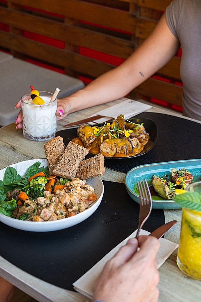 Su propuesta gastronómica combina productos ecológicos, locales y llenos de vida. Desde sus ya famosos desayunos energéticos —bowls de frutas, pancakes saludables, zumos naturales— hasta comidas equilibradas repletas de sabor: cada plato refleja el equilibrio entre placer y bienestar.