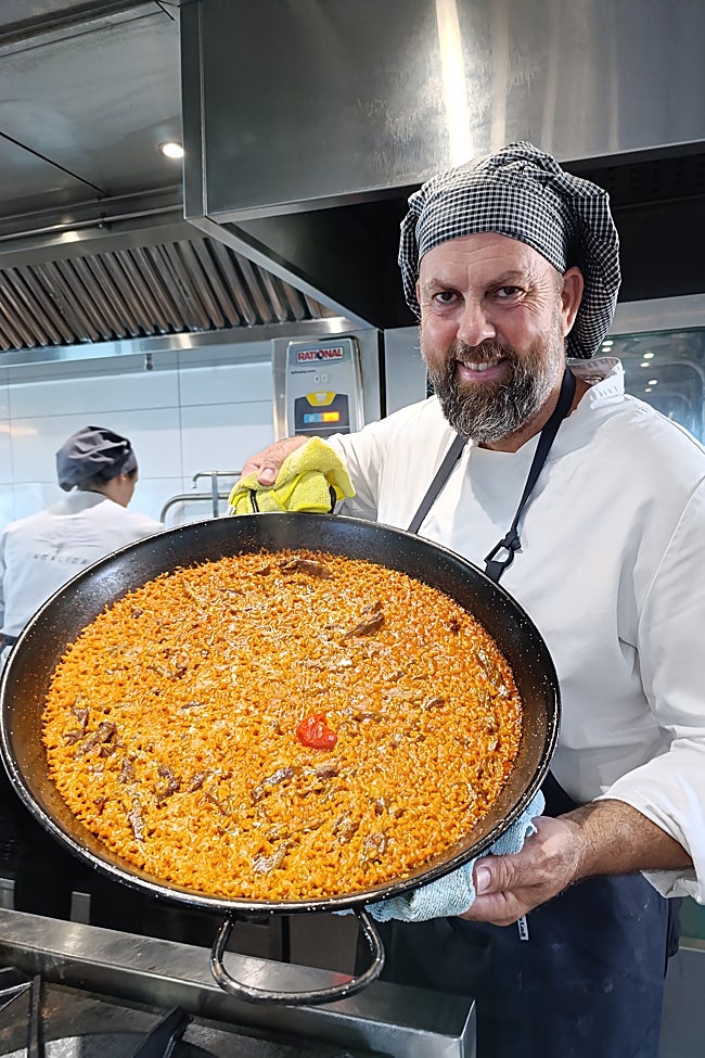 En el local de Óscar Delgado y Conchi García se pueden degustar pescados de la lonja de Caleta de Vélez, verduras de la Axarquía, jamones exquisitos y arroces y todo, fundamental, con «buen servicio»; este negocio, en marcha desde 2019, está en el conjunto de la Cueva del Tesoro