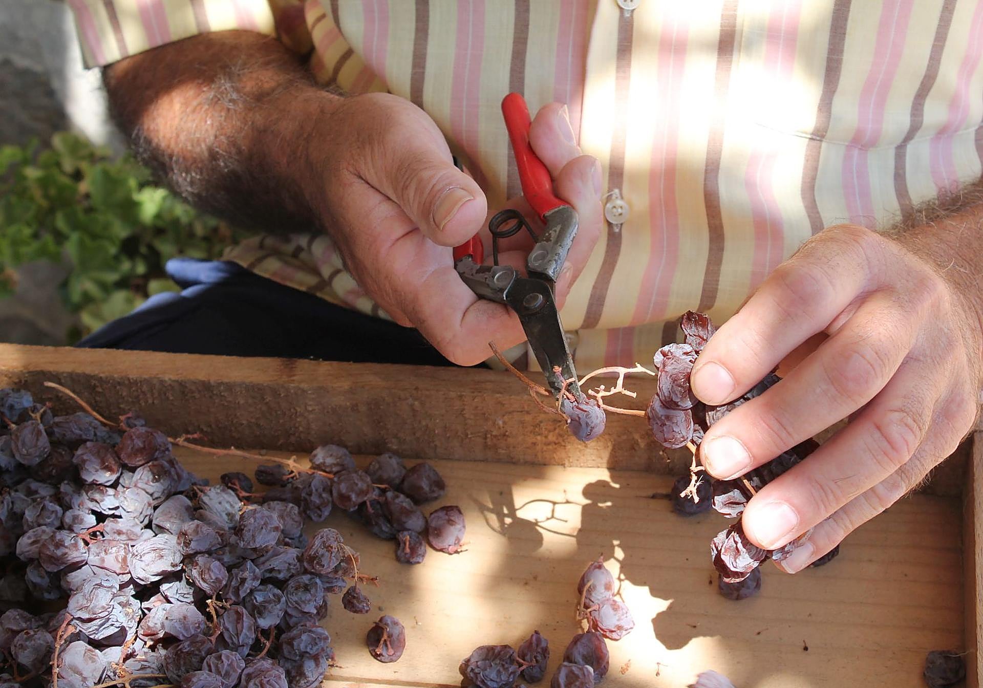 4 Cuando la uva moscatel llega al pasero comienza una fase en la que entran en juego muchos factores, que son determinantes para obtener unas buenas pasas. Con destreza y con mucho cuidado se van colocando los racimos en esos rectángulos delimitados, sin que se apilen, para que las uvas puedan secarse varios días al sol. En cualquier caso, habrá que dar la vuelta a cada racimo, uno a uno, una vez que se hayan deshidratado por el lado que estaban expuestas inicialmente las uvas. Dependiendo de la climatología, se puede tardar entre diez y quince días en conseguir que estas frutas se conviertan en pasas. Esta parte del proceso de elaboración artesanal es fundamental para obtener unas pasas de calidad, ya que a los racimos hay que sacarlos en su punto, es decir, no antes de tiempo, en el que las uvas aún tienen algo de zumo y están 'crúas', como se suele decir en la Axarquía, ni demasiado secas. Sólo manos expertas son capaces de atinar con el momento adecuado para esta fase. Hay que tener en cuenta que es el secado al sol la que propicia que la pasa moscatel de la Axarquía tenga no sólo unas características organolépticas únicas sino también sus muy reconocidas propiedades nutricionales.