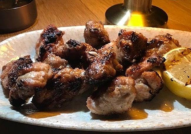 Unas mollejas de tamaño medio grande con bastante sabor llegan a la mesa con un leve toque cítrico que aporta el limón, igualmente pasado por la brasa, pero muy levemente, el tiempo justo para marcarlo y que aporte acidez a la molleja.