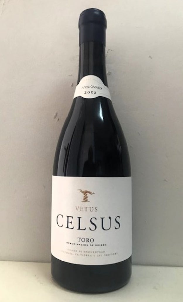 Quienes dan por terminado el auge de los vinos de Toro en la hostelería española han vuelto a equivocarse, Celsus de Bodegas Vetus es todo ... un reencuentro con los vinos preocedentes de viñedos centenarios. Cepas de Tinta de Toro con algunas Garnachas y unas pocas más de Malvasía, proceden las uvas de este tinto, una muestra de como en estas tierras y en esta denominación se hacen grandes vinos. Un color intenso a cereza negra, unos aromas a chocolate negro, frutas rojas maduras y un final a vainilla, así como mucha potencia en boca son valores ideales.