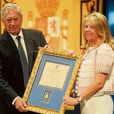 Gracias por llevar el título de Hijo Adoptivo de Marbella». Con estas palabras la alcaldesa Ángeles Muñoz terminó un discurso cariñoso y cargado de gratitud para con la figura del literato. Pese a ser un discurso ajustado en duración al protocolo, apenas seis minutos, la regidora tuvo tiempo de repasar la especial vinculación de Mario Vargas Llosa con el municipio. «En 1984 encontró en esta ciudad el descanso, el sosiego y la serenidad que buscaba para reponer fuerzas y renovar el cuerpo y la mente y desde entonces hizo suyo este rincón del mundo entre la inmensidad de lugares que podía haber escogido», defendió la regidora, quien afirmó que cuando se inició el expediente para la concesión del título de Hijo Adoptivo se hizo con el convencimiento de que había que canalizar el enorme cariño, admiración y agradecimiento que los vecinos de Marbella profesan por uno de los más importantes novelistas y ensayistas contemporáneos que lleva a gala ser uno más en Marbella. «Su fidelidad y cariño engrandecen nuestro prestigio», destacó.