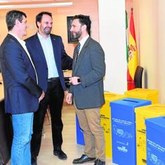 Los vicepresidentes de la Mancomunidad, José Antonio Gómez y José María Ayala, y el gerente en Andalucía de Ecoembes, Antonio López, presentaron ayer esta nueva campaña que tiene como objetivo incrementar la participación de estos locales en la recogida selectiva de envases.