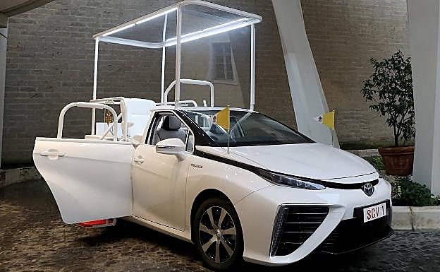 El Papa Francisco también podrá disfrutar desde ahora de la movilidad sin emisiones. Lo hará con un nuevo Papamóvil impulsado por hidrógeno, basado en ... el Toyota Mirai, que le ha sido obsequiado por parte de la Conferencia Católica de Obispos de Japón (CBCJ). Este tipo de vehículos únicamente emiten agua como residuo al circular.