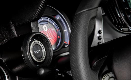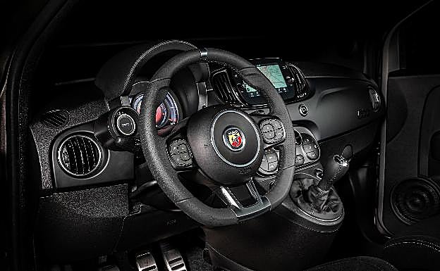 La misma audacia se puede encontrar en el interior: el volante de piel y los asientos deportivos Abarth meticulosamente acabados (los asientos Sabelt al más puro estilo de carreras están disponibles como opcional) embellecen un ambiente claramente deportivo que se completa con ciertos detalles de diseño en color negro, como el nuevo marco de la pantalla de infoentretenimiento y el nuevo salpicadero negro mate.