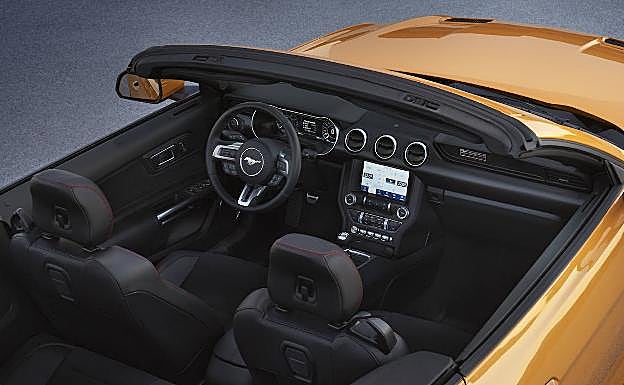 En el interior, el Mustang California Special está diseñado para proporcionar toda la diversión de la carretera abierta sea cual sea el tiempo, con detalles personalizados de California Special que añaden un atractivo exclusivo. Las tecnologías de confort de serie incluyen asientos delanteros calefactados y refrigerados, un cuadro de instrumentos personalizable de 12 pulgadas y la avanzada conectividad SYNC 3.