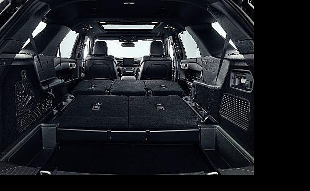 1. Un espacio amplio y versátil: La cabina del Explorer ofrece un amplísimo espacio interior, con siete asientos de gran tamaño, cuya segunda fila de asientos es reclinable con ajuste longitudinal y se desliza hacia delante para facilitar el acceso a la tercera fila. Con todos los asientos abatidos, el espacio de carga ofrece unos impresionantes 2.274 litros de capacidad. Con cinco asientos, el espacio para equipaje cubica hasta 1.137 litros. Y para que la carga sea aún más fácil, cuenta con un portón trasero motorizado manos libres de serie.