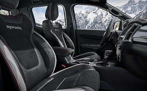 En el interior de la doble cabina del Ranger Raptor Special Edition, la sensación de deportividad y de diseño a medida es aún mayor gracias a las costuras rojas del volante, el panel de instrumentos y los paneles de las puertas. Los asientos de cuero de alta calidad de serie están diseñados para ser cómodos y proporcionar apoyo tanto si se aborda un terreno accidentado o una carretera suave, y el panel de instrumentos en color gris Raceway, exclusivo de esta edición especial, añade más exclusividad.