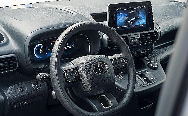 En el interior, Proace City Electric se distingue de las versiones de motor de combustión por el cuadro de instrumentos, específico y con información del consumo EV, porcentaje de uso de la batería y la autonomía estimada, y por la ausencia de palanca de cambios, que es reemplaza por el selector e-toggle con las diferentes posiciones de funcionamiento -P, R, N, D y B- y modos de conducción -Power, Normal y Eco-.
