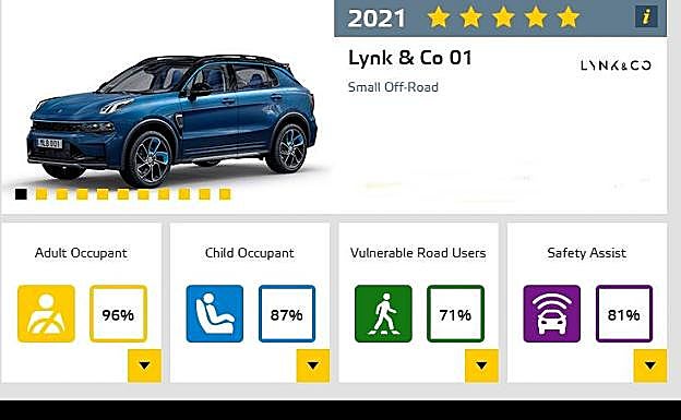 Lynk & Co, la segunda marca china nueva en Europa, aprovecha para su modelo 01 su conexión con Geely (propietaria de Volvo) para adoptar sistemas de seguridad del Volvo XC40. Los resultados son impresionantes. El SUV pequeño híbrido / híbrido enchufable se desempeña bien en todos los aspectos, pero se destaca con un 96% en la protección de ocupantes adultos. El modelo está a la venta en España desde 35.000 euros.