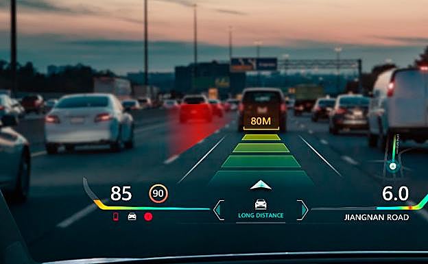 ¿Pueden proyectar imágenes? Técnicamente podrían proyectar cualquier imagen, aunque por su propia naturaleza, los head-up displays solo muestran letras, números, gráficos e iconos. Huawei ha mostrado un modelo en el último Salón del Automóvil de Múnich que puede convertir el parabrisas del coche en una pantalla inteligente. Ofrece un amplio ángulo de visión de 13 x 5 grados y resolución Full en una pantalla de gran formato, por lo que puede mostrar vídeos de alta definición, videojuegos o videollamadas, siempre que el coche esté detenido.