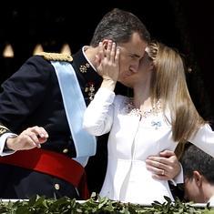 La reina Letizia no ha podido evitar emocionarse por el gran momento y se ha acercado a don Juan Carlos para darle un abrazo. Sus hijas, muy tímidas, no han parado de saludar desde el balcón. Mientras tanto, doña Letizia ha peinado y ayudado a mantenerse sobre el peldaño a la infanta Sofía, a su izquierda. "España unida, jamás será vencida" es otra de las frases que se ha oído gritar a los congregados en la Plaza de Oriente.