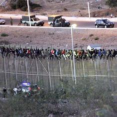 Hoy podría pasar lo mismo después de que, tras varios acercamientos desde poco antes de la 01.00 horas de la madrugada, finalmente unos 600 inmigrantes divididos en varios grupos intentaran entrar en Melilla saltando el vallado fronterizo y quedaran encaramados cerca de un centenar.