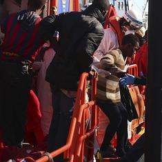 Los inmigrantes rescatados, entre ellos cinco mujeres embarazadas y un bebé, llegaron ayer al puerto de Almería a las 13.30 horas, donde fueron atendidos por voluntarios de Cruz Roja.