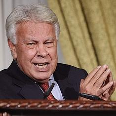Felipe González elude comentar la cena de Zapatero e Iglesias: «Yo estoy a dieta y no ceno»