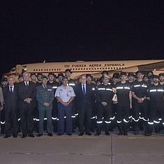 El ministro del Interior ha recibido en la Base Aérea de Zaragoza al avión militar Boing 707 en el que han regresado los 47 efectivos de la Unidad Militar de Emergencias y los doce guardias civiles desplazados
