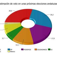 En este contexto, el PSOE resiste en Andalucía en unas elecciones autonómicas, aunque con un fuerte varapalo. De celebrarse ahora el PSOE ganaría de nuevo con una estimación de voto del 28,6 por ciento de los votos y una ventaja de 2,4 puntos sobre el PP-A, que se situaría segundo con el 26,2 por ciento de los votos. Por su parte, Podemos sería tercero con el 17 por ciento de los sufragios, por delante de Ciudadanos (C's), con el 12,1 por ciento, y de IULV-CA, con el 5,7 por ciento. Con estos resultados, el PSOE perdería más de siete puntos con respecto a las últimas elecciones autonómicas de marzo de 2015, en las que obtuvo un 35,43 % de los votos, y en el caso del PP, que logró entonces un 26,76%, la pérdida sería de décimas. El PSOE cuenta en el Parlamento andaluz con 47 diputados, 33 el PP, 15 Podemos, 8 Ciudadanos y 5 Izquierda Unida.