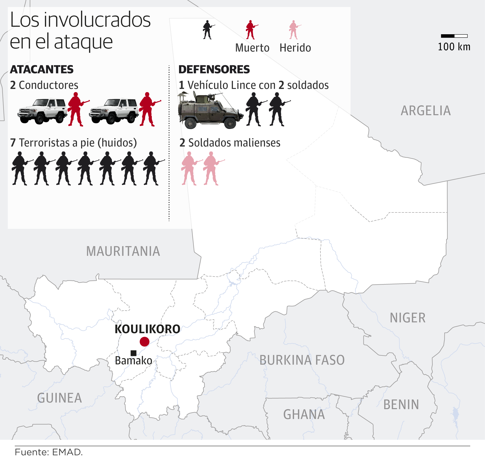 La sección de Al Qaeda en el Sahel ha reivindicado en su cuenta habitual de la red Telegram el atentado del pasado domingo contra la ... base de Koulikoro, en Mali, donde cerca de 300 instructores españoles y otros tantos de otros países europeos entrenan a los militares malienses. Los yihadistas aseguran que el ataque fue cometido por«aspirantes al martirio», que se infiltraron en el campamento y estuvieron en su interior durante varias horas del domingo, antes de retirarse sanos y salvos.